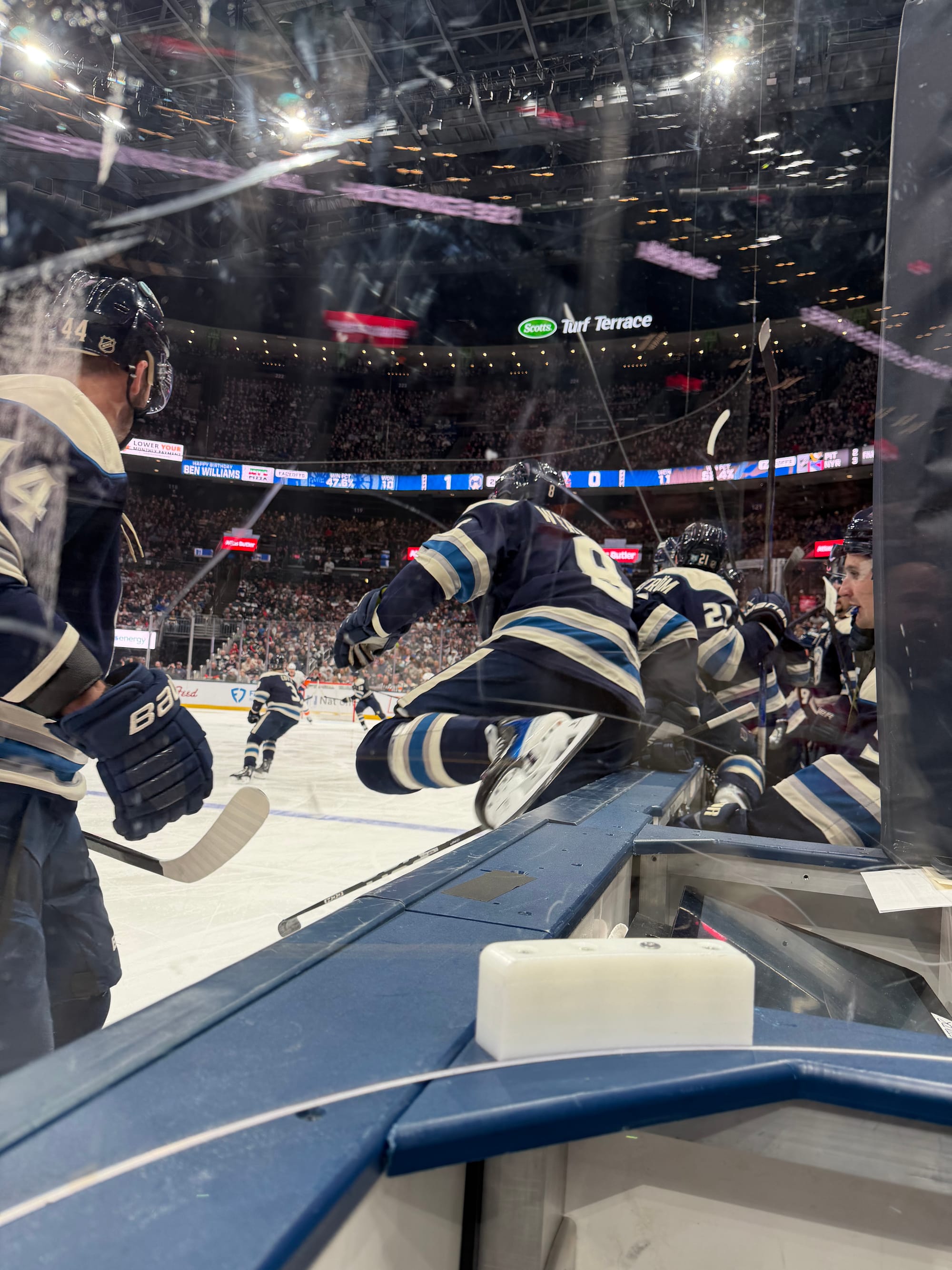 Stayed up late to watch USA win monobob gold. Starting over doesn't mean starting young. Ice box at a Blue Jackets game. Hockey is a different sport when you can see the players' breath. Cats always insisting on their own agenda, indifferent to mine. I respect it.