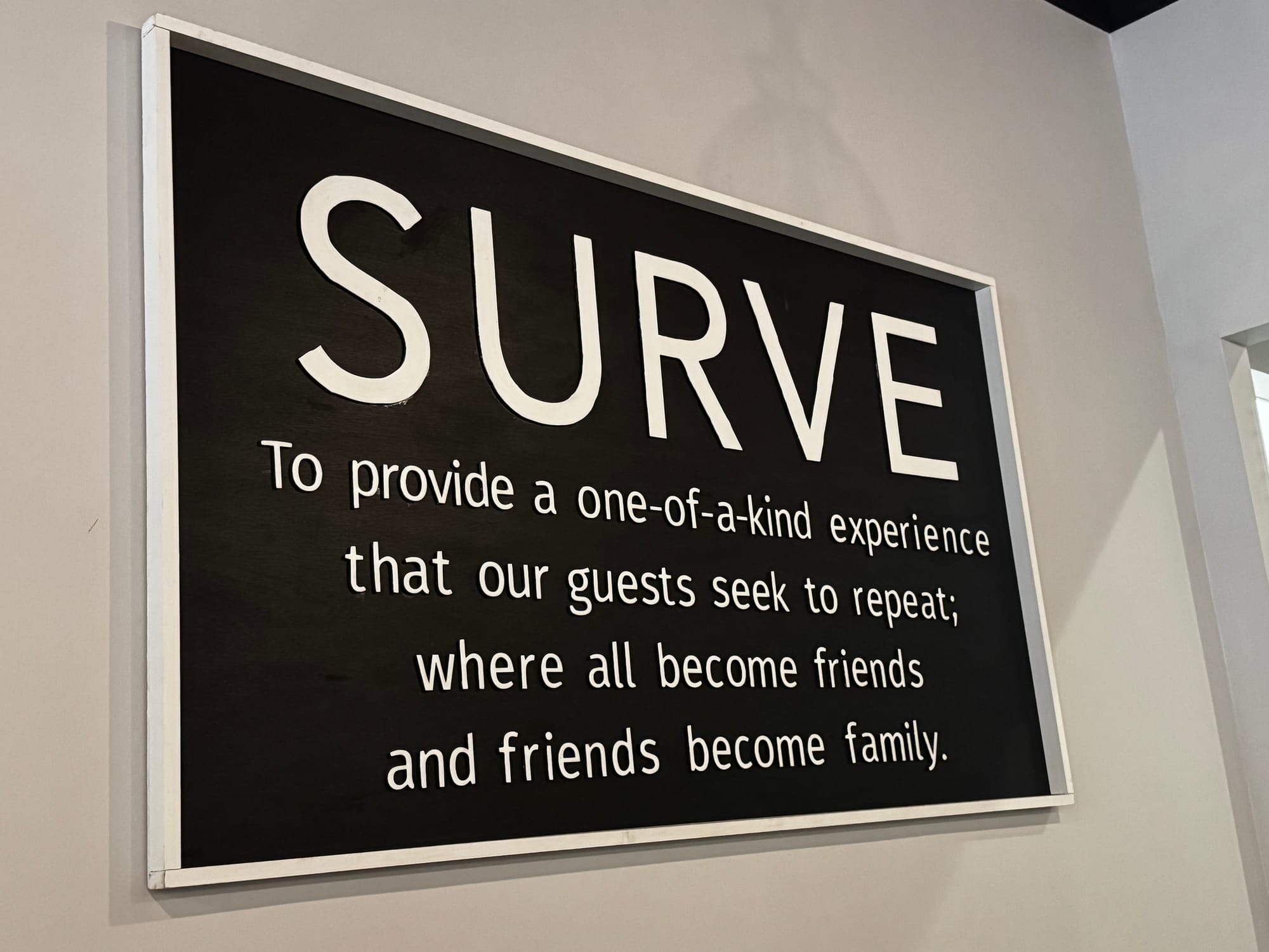 I was in an unfamiliar part of town, on an adventure with a small group of new friends. We picked Surve mostly because it was nearby, it was open, and we appreciated the typography they used in their logo. Once we walked through the door, we became fast fans. We were greeted warmly and enthusiastically by the hostess, the food was hyped up by the waitress, and Chef Joe delivered. A simple, healthy, comfort meal served with a generous side of hospitality. Some of the kindest people I’ve ever met work here. They expressed authentic care for our dinner. And our group of four barely broke 50 bucks. Surve is proof that Unreasonable Hospitality can exist outside of that one place in New York City.